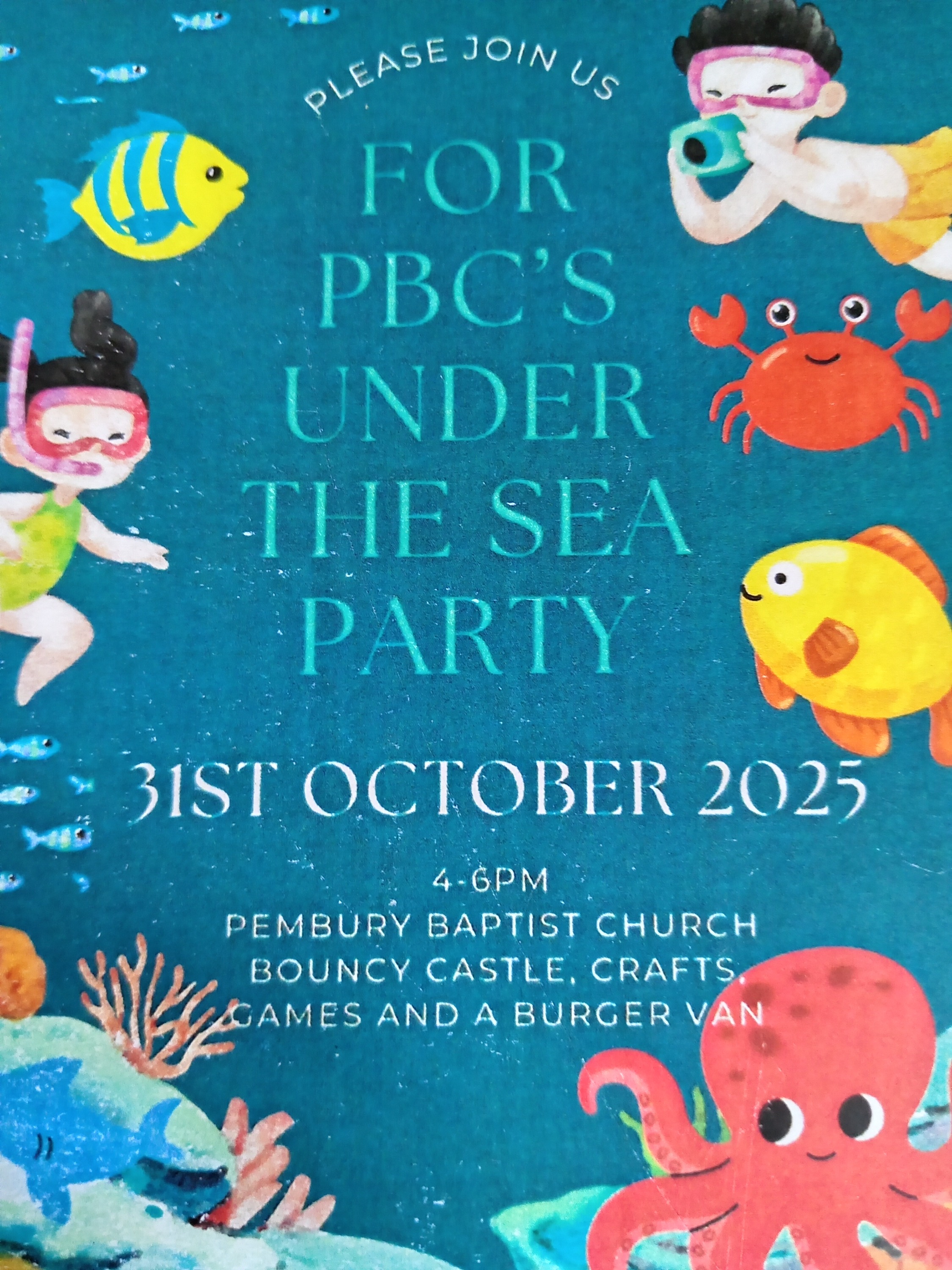 Come and join us at PBC for an Under the Sea themed party on Friday 31st October for all the family!